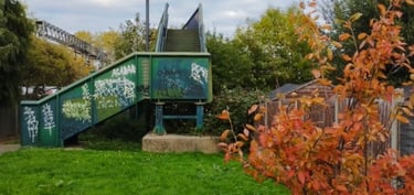 This trail runs from Manor Road to Francis Road, and after crossing the railway by footbridge, it crosses Kenton Park to reach The Belmont Trail. The Belmont Trail follows the route of the old "Belmont Ratler" railway that ran between Wealdstone and Stanmore. A look at a map will show that from Belmont, using residential roads and a path across Stanmore Hill Golf Course, it is possible to reach the lower gate of Bentley Priory Nature Reserve